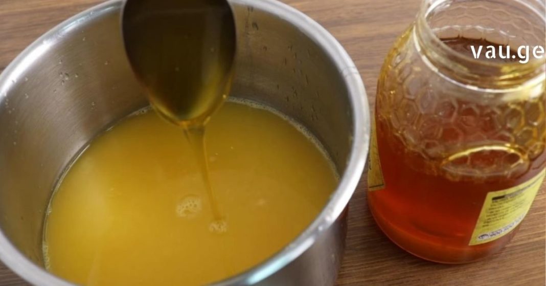 Start by pouring the mineral water over the gelatin and allow it to soak for about 30 minutes, or until it swells and softens. After that, place the softened gelatin into a heatproof glass bowl. Add the crushed aspirin, glycerin, and honey. Then, place this bowl into a hot water bath and stir the mixture gently with a wooden stick or spoon until it becomes a smooth and uniform consistency.