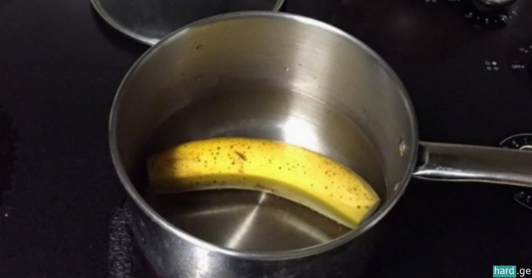 - Place the banana—peel and all—into a pot with 200 ml of water.